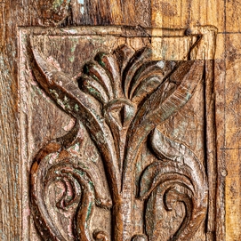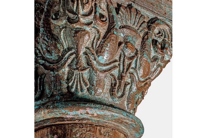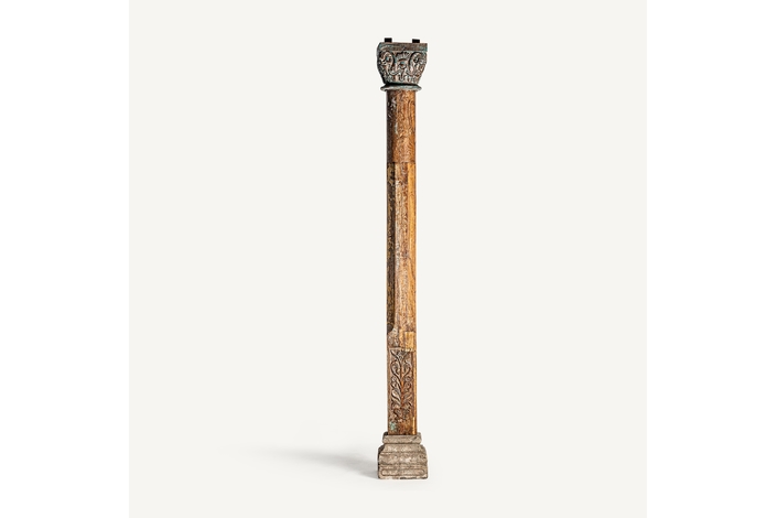 Columna roden, en color marrón envejecido, de estilo étnico. Fabricado en madera de teka. Producto desmontable.