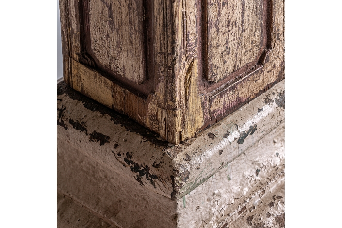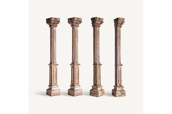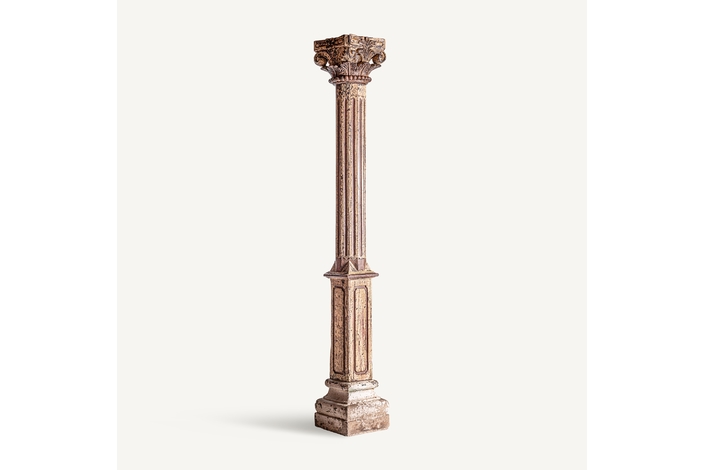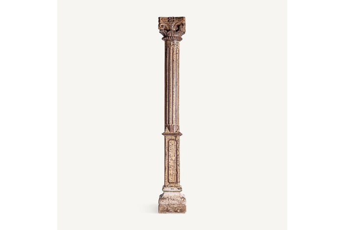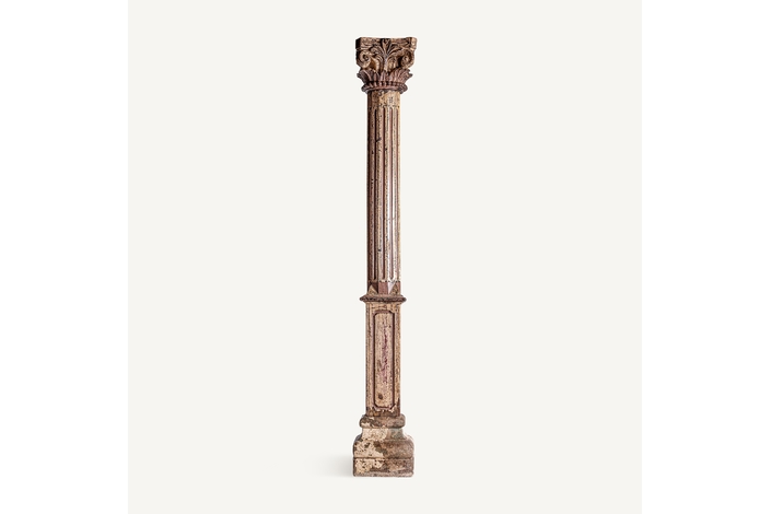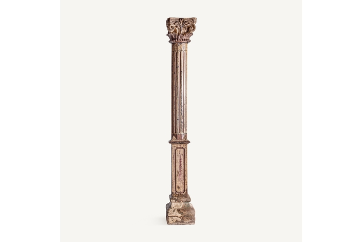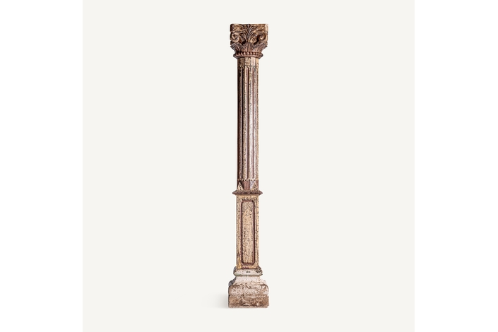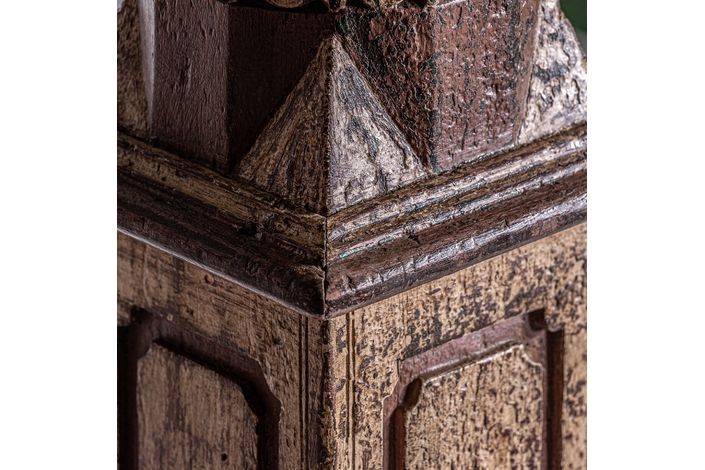 Columna surt dasha, en color tonos en marrón envejecido, de estilo étnico. Fabricado en madera de teka.
