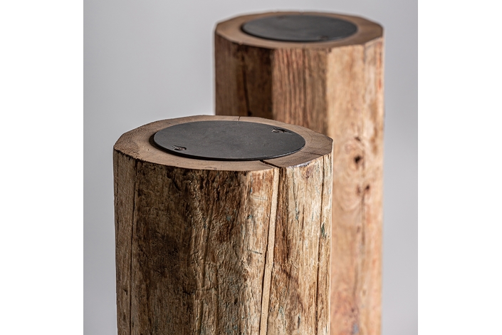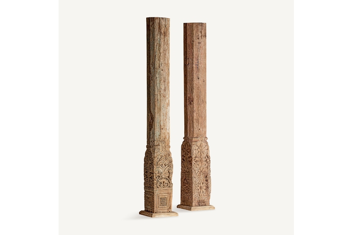 Columna surt gea, en color beige envejecido, de estilo étnico. Fabricado en madera de teka.