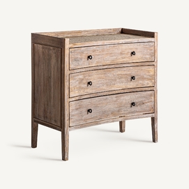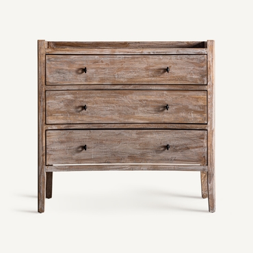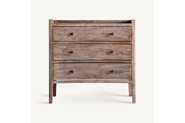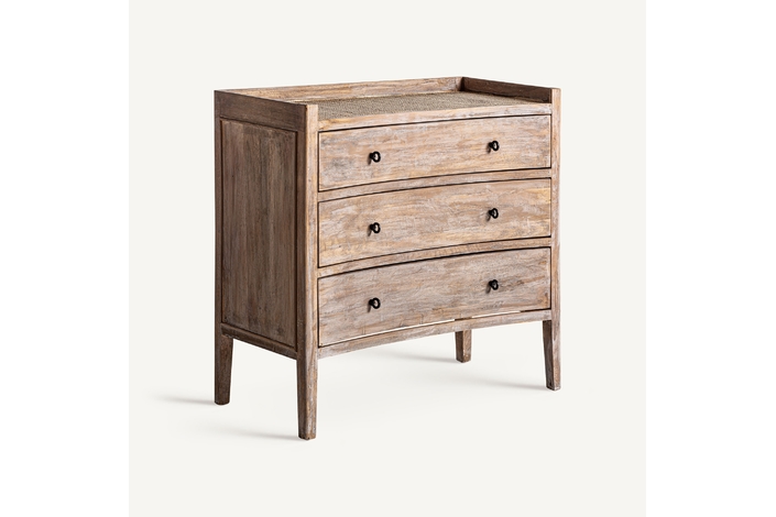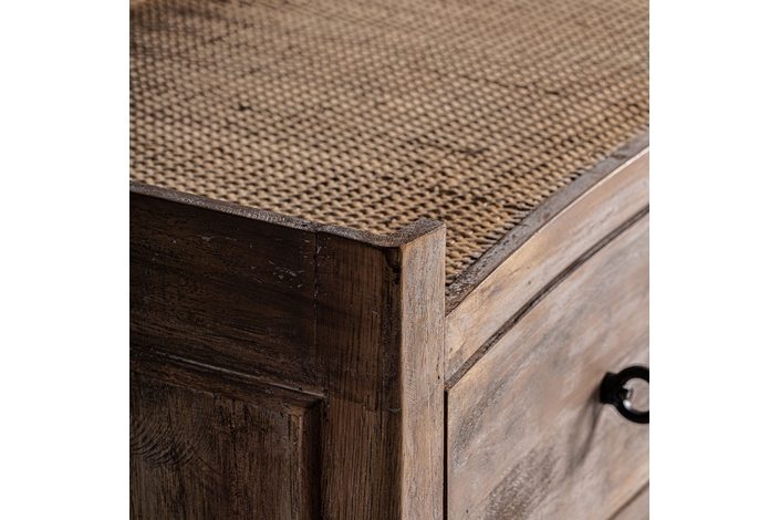 Cómoda lahn, en color blanco roto envejecido, de estilo provenzal. Fabricado en madera de abeto, combinado con ratán.