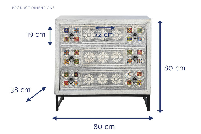 Dimensiones (cm) Longitud 80  |  Fondo 38  |  Altura 80 Peso neto producto (kg) 37,00 Material Mango  |  Ceramica