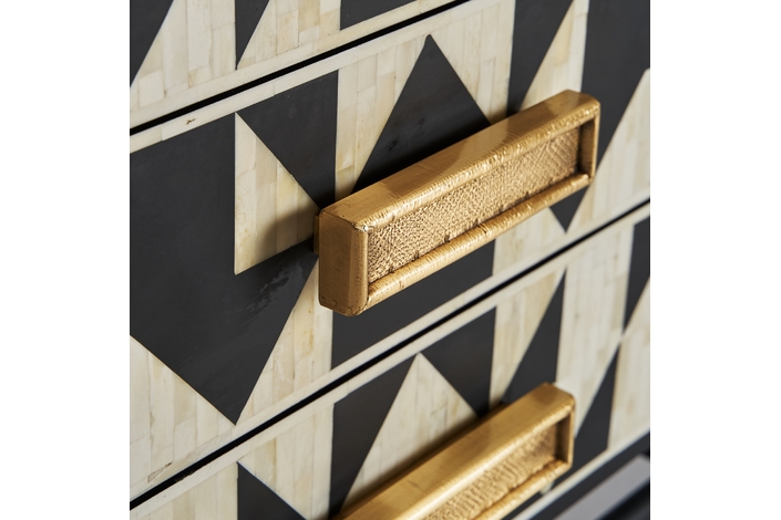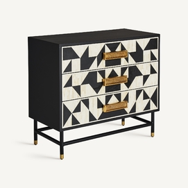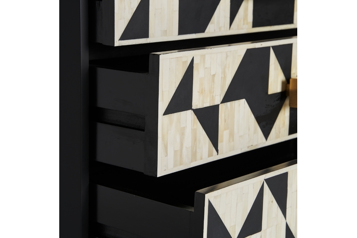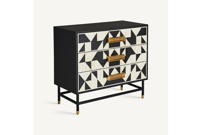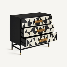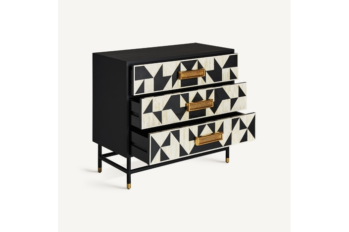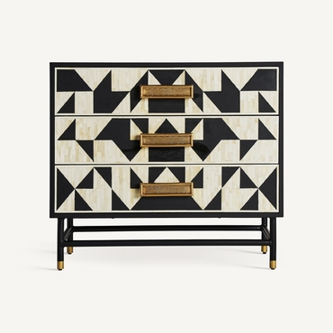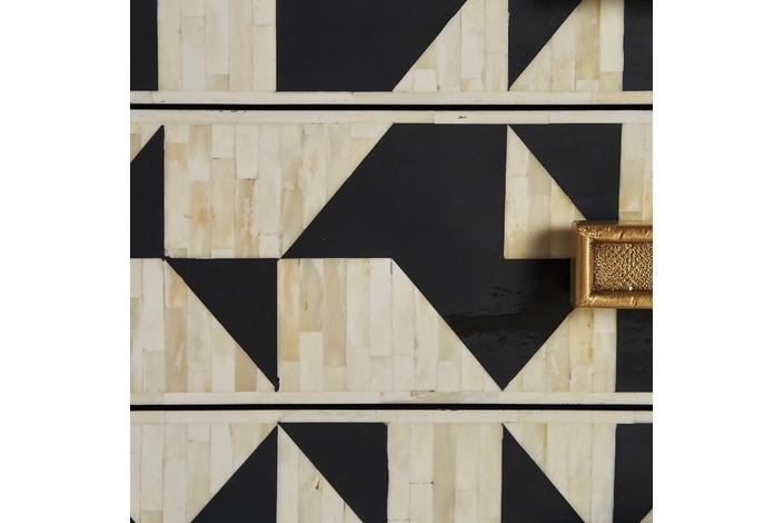 Cómoda senj, en color negro/blanco, de estilo art deco. Fabricado en hierro, combinado con hueso.