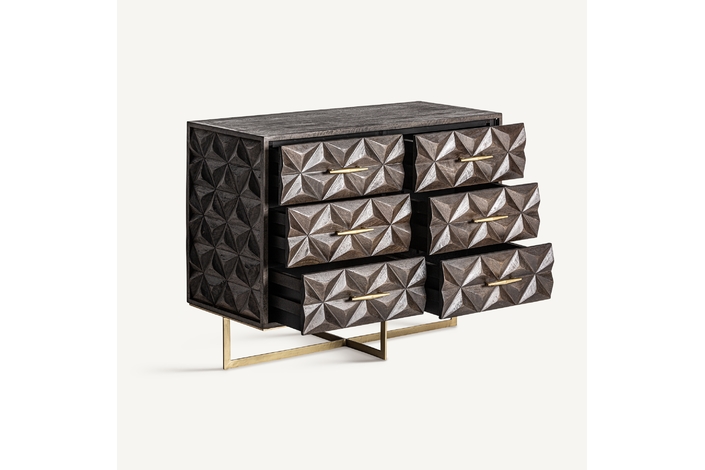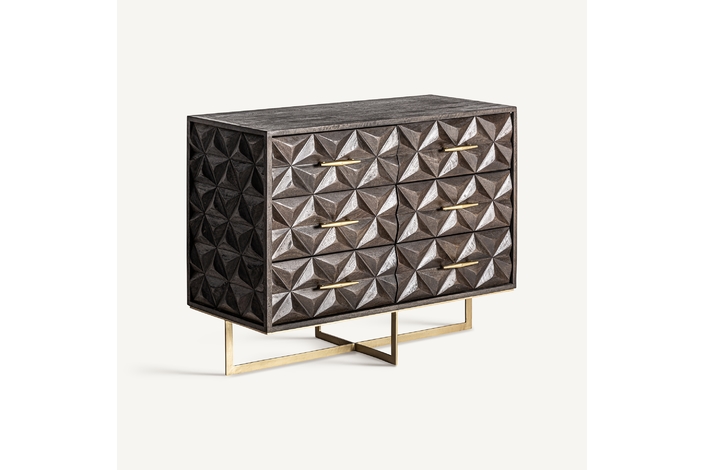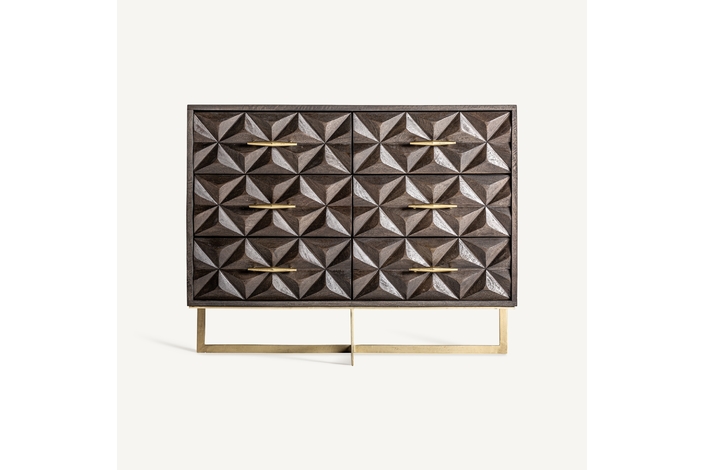 Combina lo moderno con lo sofisticado con la Cómoda Tully de VICAL home. Hecha de madera de mango y detallada con latón, su diseño marrón con toques dorados irradia elegancia. Con 100x45x80cm, es perfecta para almacenar y organizar. Tully no solo es una pieza funcional sino también un reflejo de buen gusto y estilo. Convierte cualquier espacio en un rincón de sofisticación con Tully.