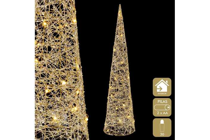 CONO CON LUZ METAL ORO 20 X 20 X 80 CM