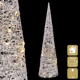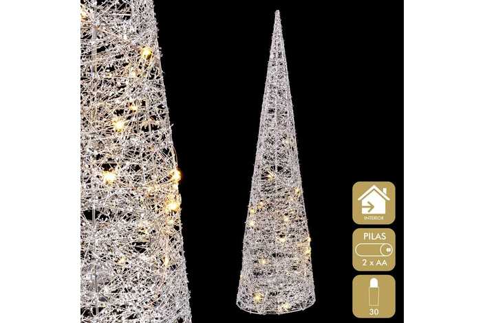 CONO CON LUZ METAL PLATA 20 X 20 X 80 CM