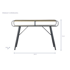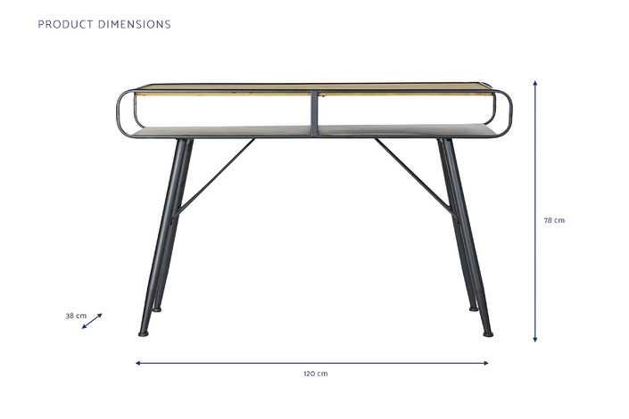 Dimensiones (cm) Longitud 120  |  Fondo 38  |  Altura 78 Peso neto producto (kg) 12,40 Material Abeto  |  Metal
