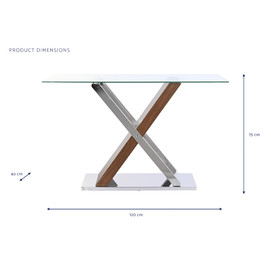 Dimensiones (cm) Longitud 120  |  Fondo 40  |  Altura 75 Peso neto producto (kg) 21,50 Material Acero  |  Cristal
