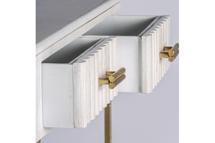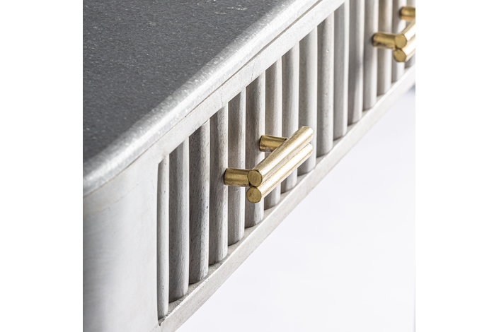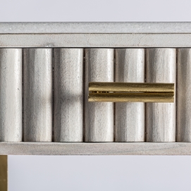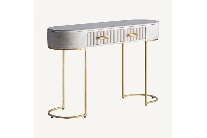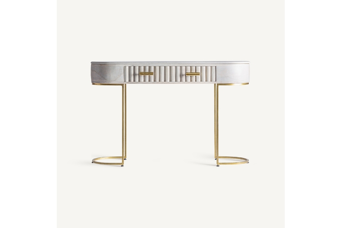 La Consola Glees de VICAL home es la esencia de la elegancia. Fabricada en madera de mango con detalles en hierro y latón, su acabado en crema y oro es simplemente deslumbrante. Con dimensiones de 122x38x78cm, Glees es perfecta para realzar tu entrada o salón. Si buscas un mueble que combine belleza y funcionalidad, la concola elegante Glees es la elección perfecta.