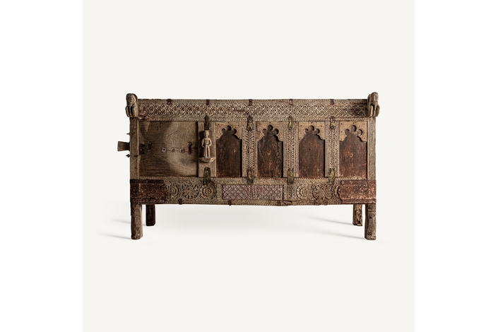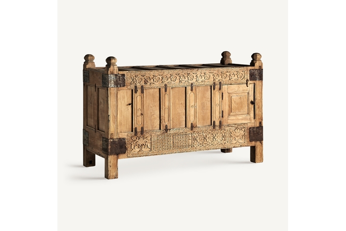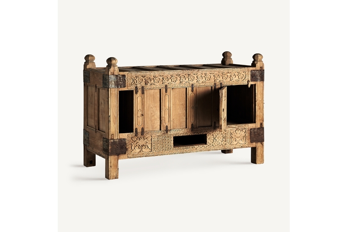 Consola gonda, en color marrón envejecido, de estilo étnico. Fabricado en madera de mango.