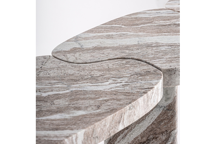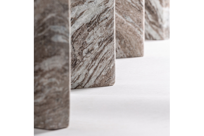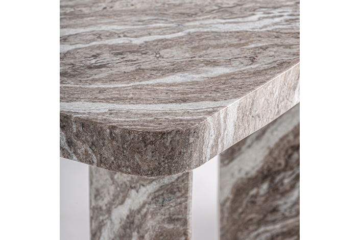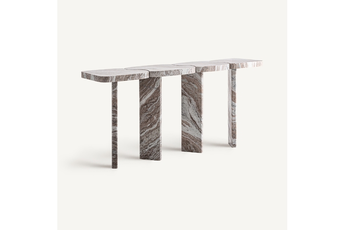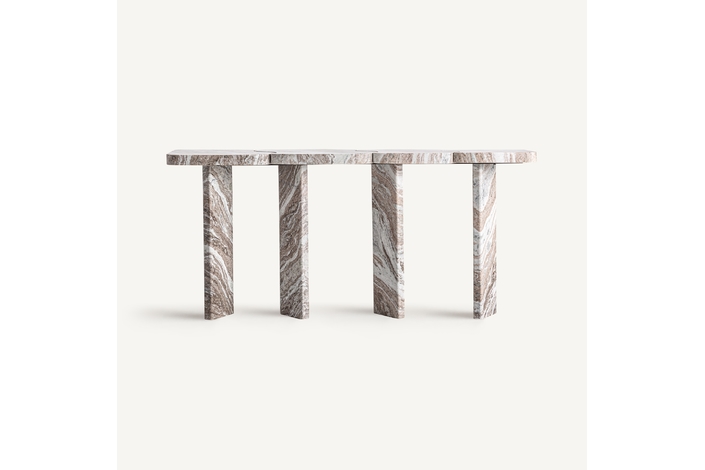 Consola Legsby de estilo contemporáneo, fabricado en mármol en color tonos neutros.