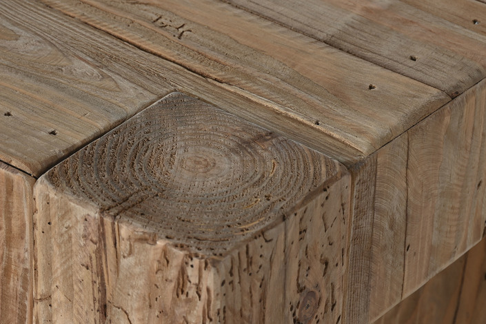 Dimensiones (cm) Longitud 117  |  Fondo 36  |  Altura 71 Peso neto producto (kg) 25,00 Material Madera reciclada  |  Pino