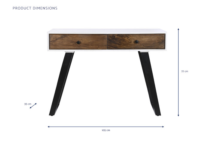 Dimensiones (cm) Longitud 105  |  Fondo 35  |  Altura 77 Peso neto producto (kg) 25,30 Material Mango  |  Metal