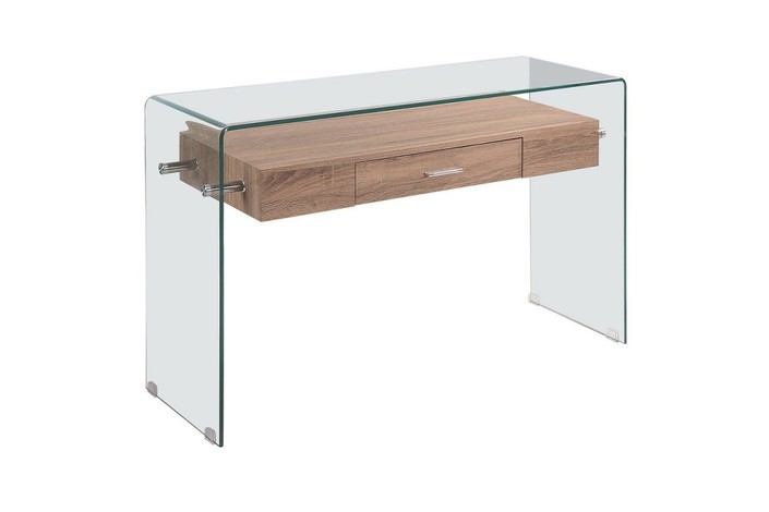 Consola de diseño, estante de MDF con cajón, cristal curvado, 12 mm. de espesor.