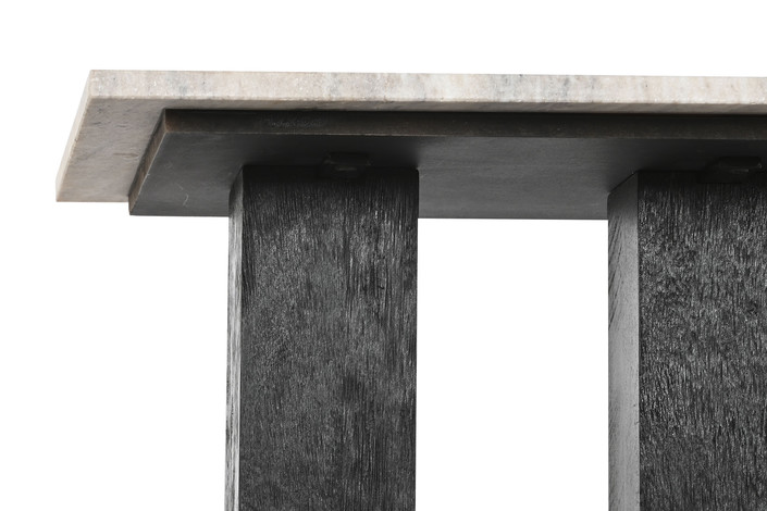 Dimensiones (cm) Longitud 118  |  Fondo 32  |  Altura 77 Peso neto producto (kg) 35,00 Material Marmol  |  Mango