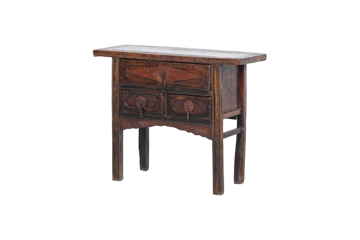 : 100 años PROCEDENCIA: Shanxi (China Central) MATERIAL: Olmo ACABADO: Natural Peso: 30 Kg Largo: 104 cm. Ancho: 43 cm. Alto: 85 cm.