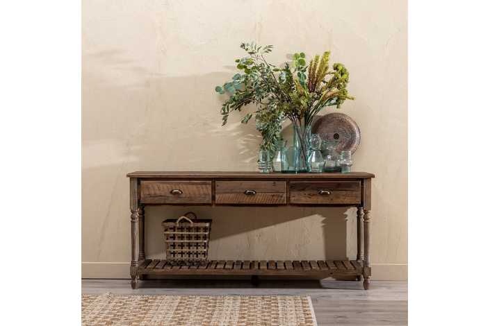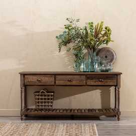 Material: madera de abeto - Dm Altura patas hasta leja: 11cm. Medida cajones: 53.5x17.5cm.