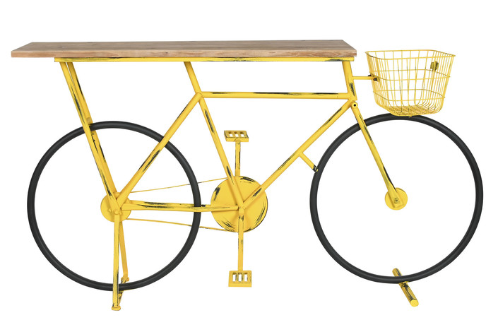 CONSOLA METAL MADERA 160X40X88 BICICLETA AMARILLO