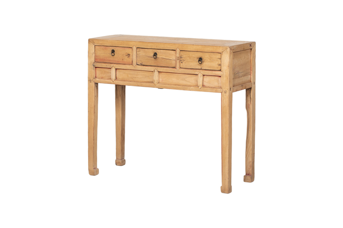 : 80 años PROCEDENCIA: Shandong (Este de China) MATERIAL: Madera Olmo ACABADO: Natural Peso: 14.3 Kg Largo: 96 cm. Ancho: 35 cm. Alto: 85 cm.