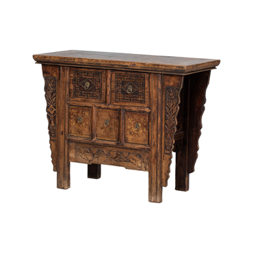 : 100 años PROCEDENCIA: Shandong (Este de China) MATERIAL: Madera Olmo ACABADO: Natural Peso: 31.27 Kg Largo: 109 cm. Ancho: 45 cm. Alto: 85 cm.