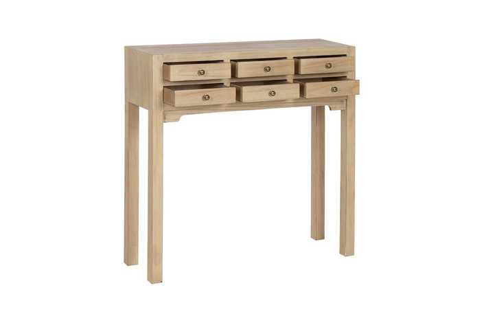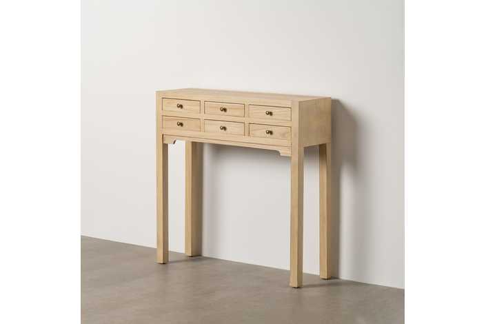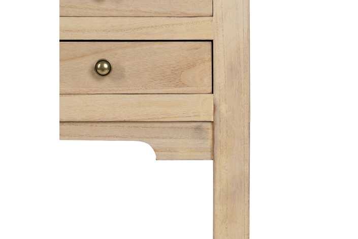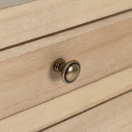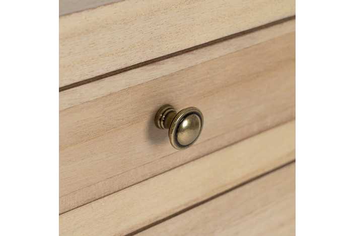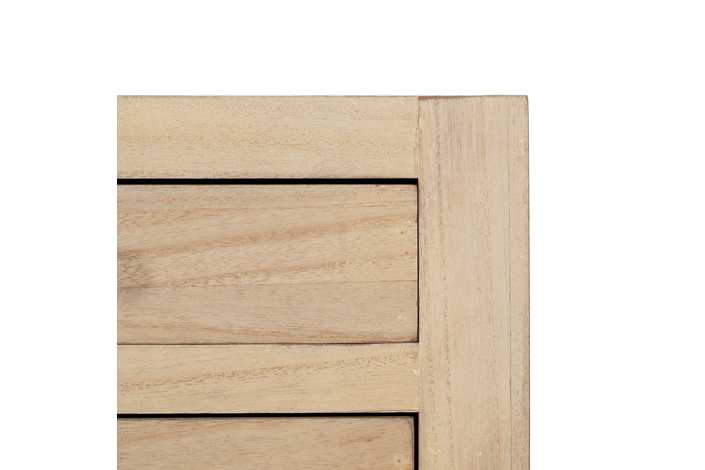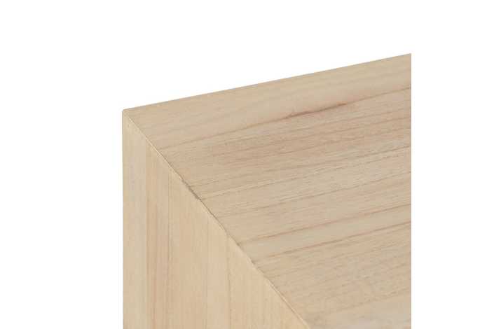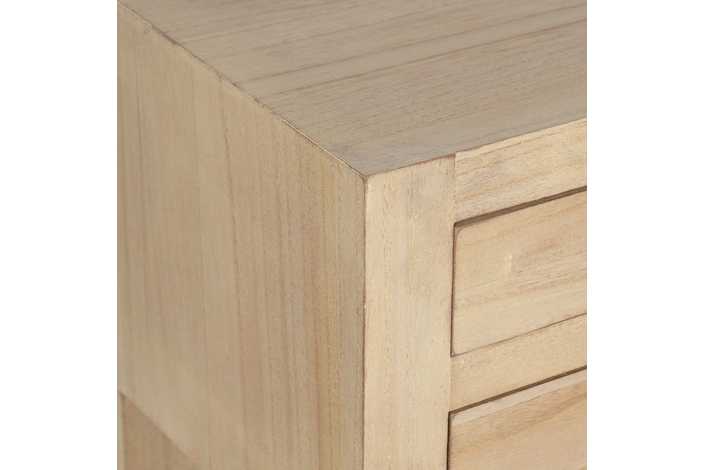 Material: estructura principal Dm - revestido con madera de paulonia. Altura patas: 60cm. Medida cajones: 24x24x6cm. No precisa montaje.