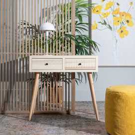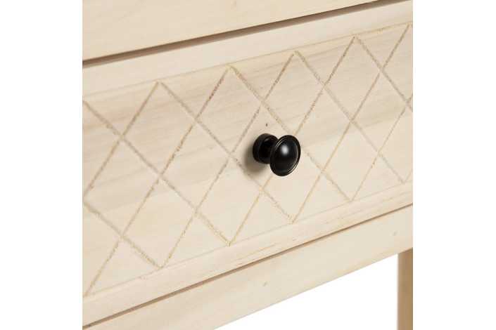 MATERIAL PATAS: MADERA DE ÁLAMO MATERIAL CAJONES: MADERA DE ÁLAMO MATERIAL TIRADORES:ZAMAK ALTURA PATAS: 60.5CM PESO MÁXIMO SOPORTADO:50KG.