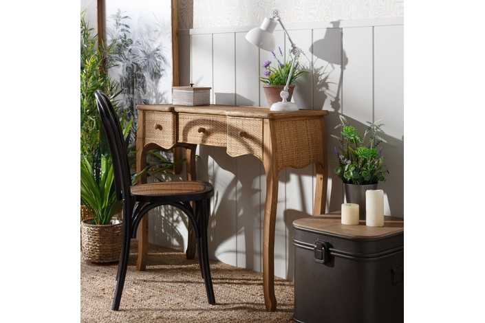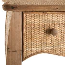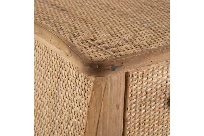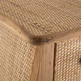 Material: Dm - ratán - tiradores madera de abeto. Altura patas: 60cm. Medida cajones: 22x34.5x17.5 - 34x32x14cm.