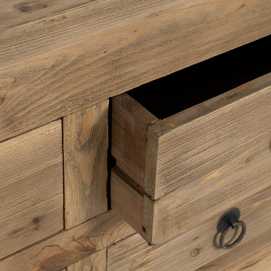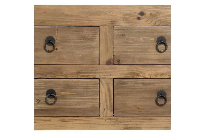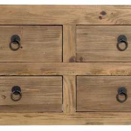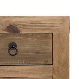 Material: madera reciclada de olmo. Cajones: 35x14cm. Altura patas: 6,5cm. Altura hueco: 33,5cm. Peso máximo soportado: 100kg.