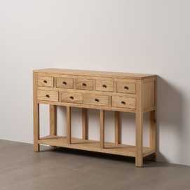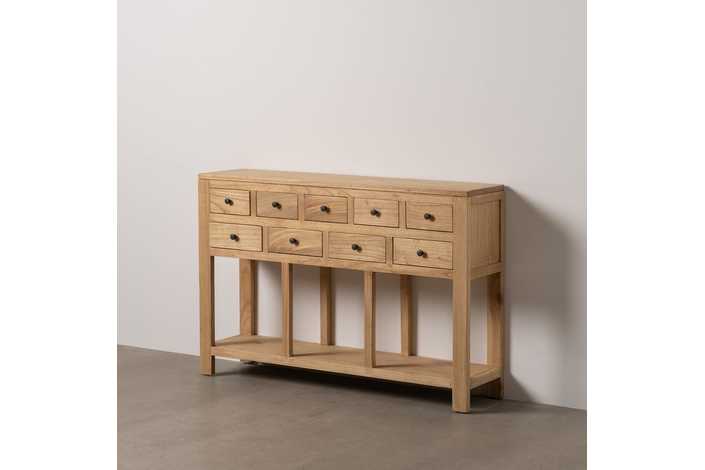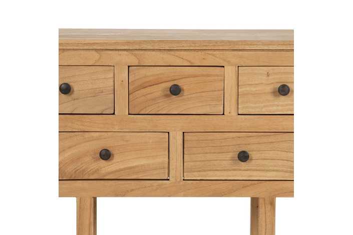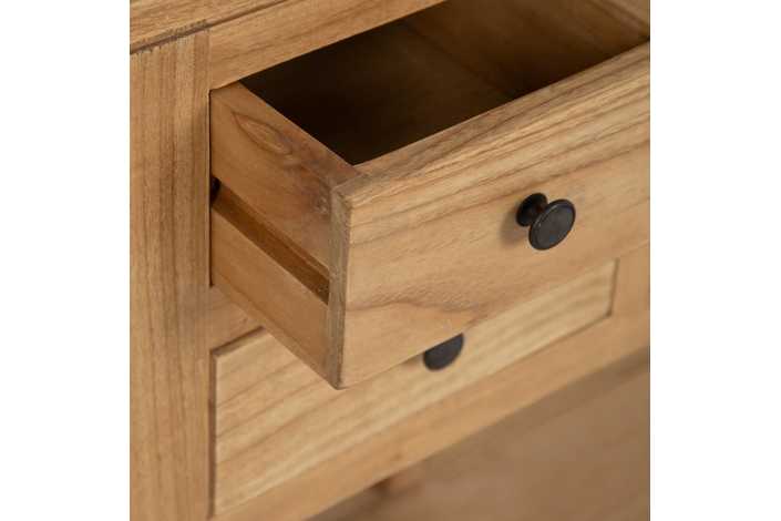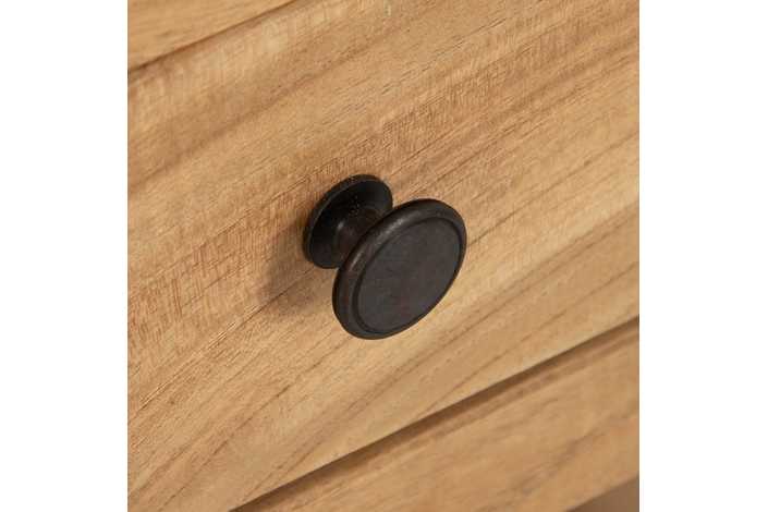 Material: madera de mindi. Cajones: 19,5x10cm. Altura patas: 9cm. Altura hueco: 36cm.