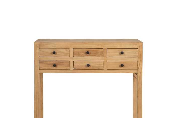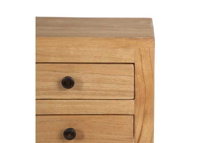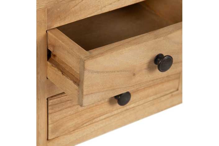 Material: madera de mindi. Cajones: 24x7cm. Altura patas: 61cm.