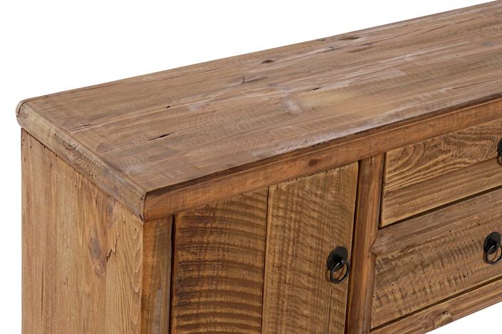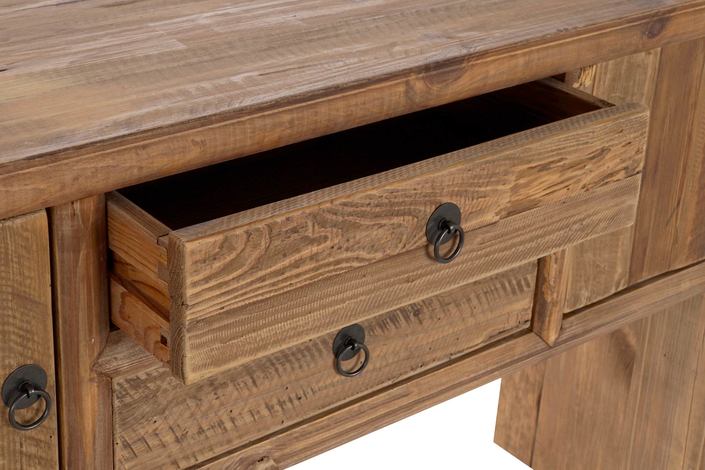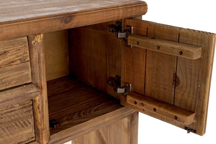 Dimensiones (cm) Longitud 120  |  Fondo 35  |  Altura 76 Peso neto producto (kg) 38,00 Material Pino  |  Madera reciclada