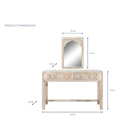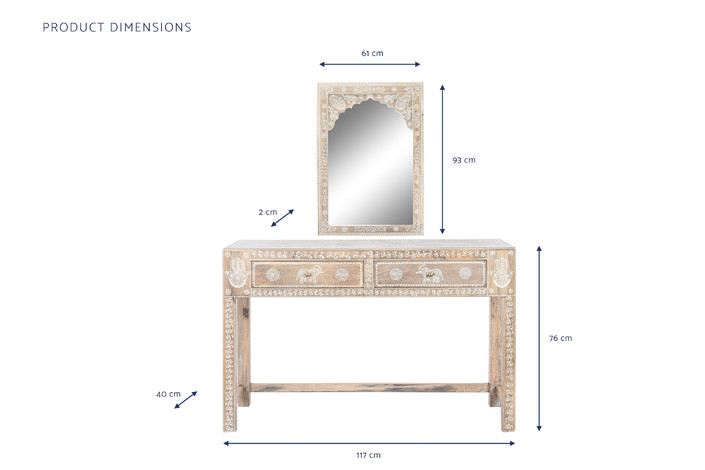 Dimensiones (cm) Longitud 117  |  Fondo 40  |  Altura 76 Peso neto producto (kg) 25,34 Material Mango  |  Acrilico  |  Espejo