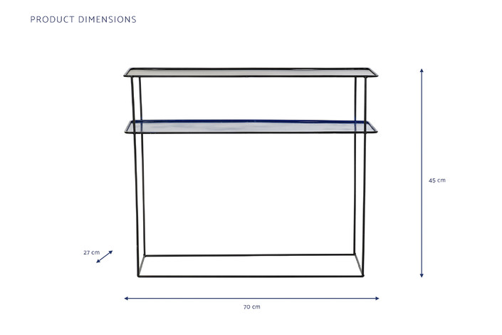 Dimensiones (cm) Longitud 80  |  Fondo 27,5  |  Altura 65 Peso neto producto (kg) 8,00 Material Metal