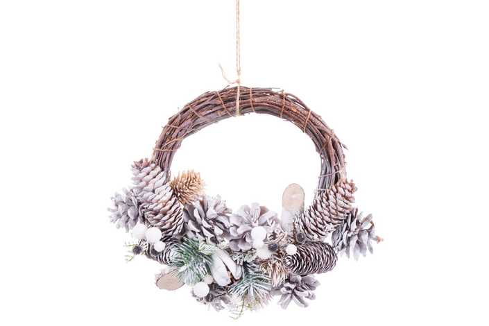 CORONA COLGAR PIÑAS NIEVE 24 X 22 X 8 CM