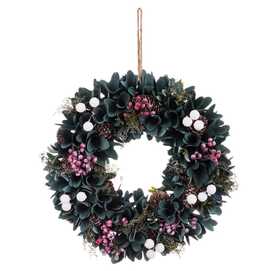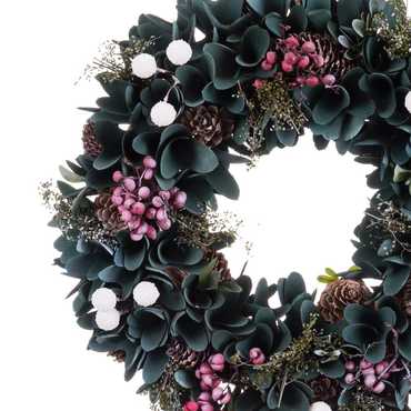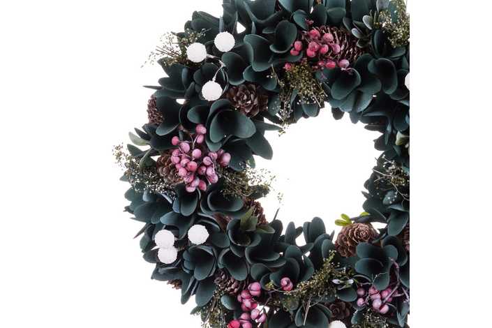 CORONA FOLLAJE Y ACEBO MADERA/PLÁSTICO 30 X 7 X 30 CM