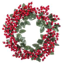 CORONA HOJAS Y ACEBO ROJO 45 X 45 CM