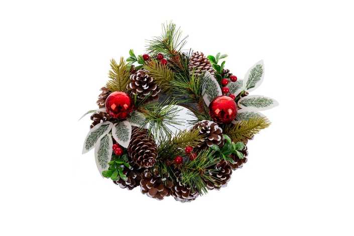 CORONA HOJAS Y BOLAS 22 X 22 CM