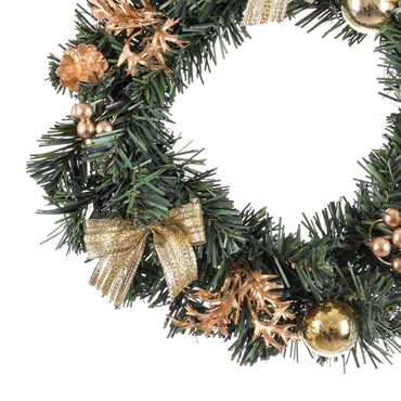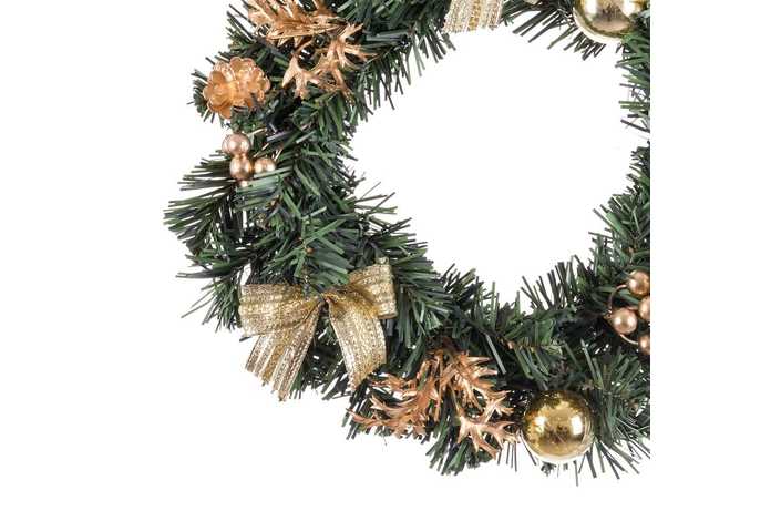 CORONA LAZOS PVC/PIÑAS ORO 30 X 30 X 6 CM