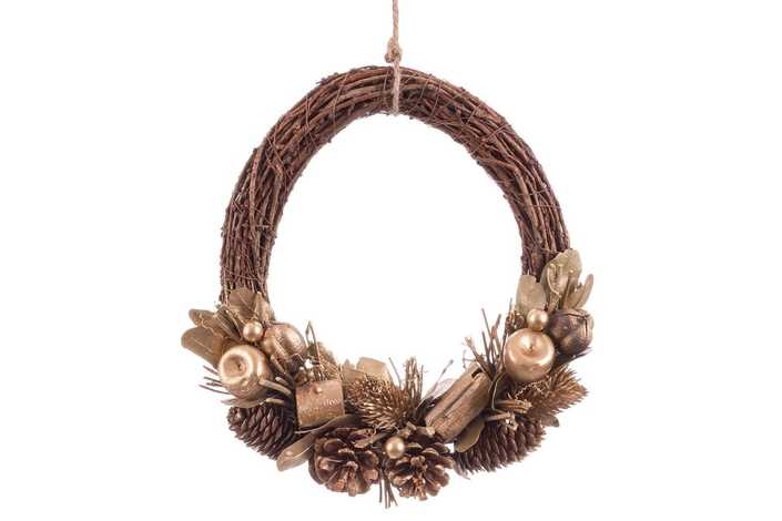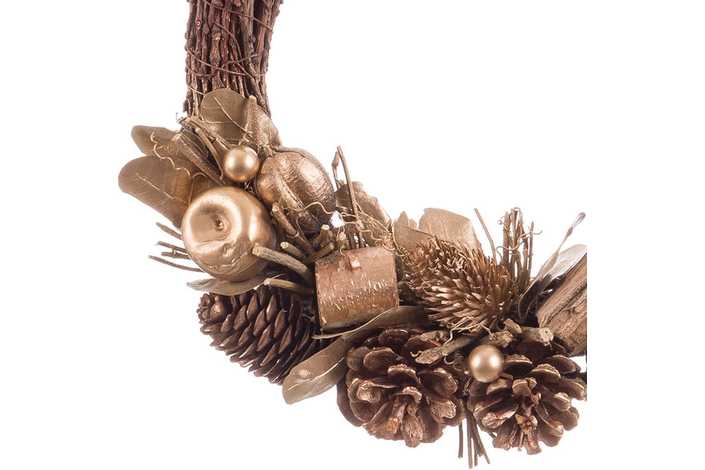 CORONA PIÑAS, HOJAS Y MANZANAS DORADO 28 X 8 X 29 CM