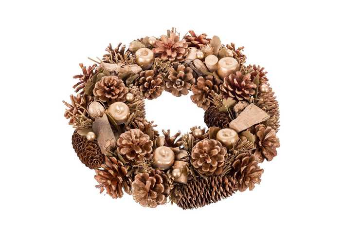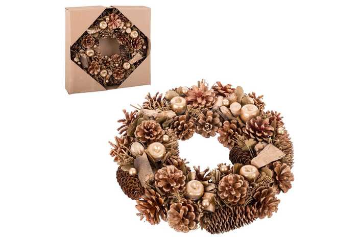CORONA PIÑAS, HOJAS Y MANZANAS DORADO 36 X 9 X 36 CM