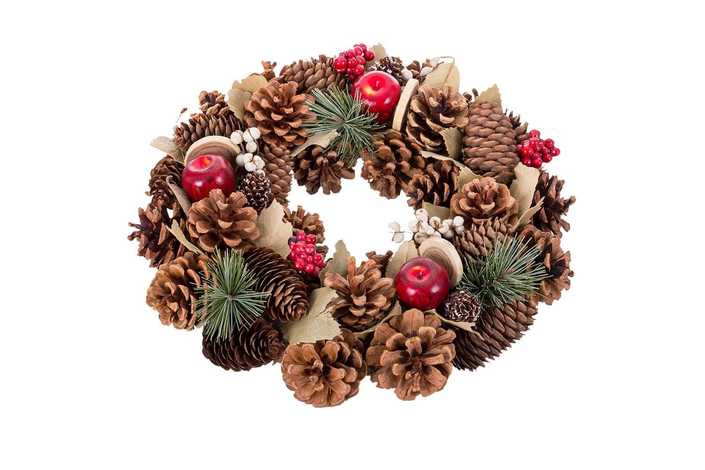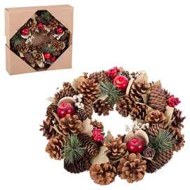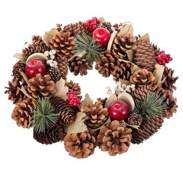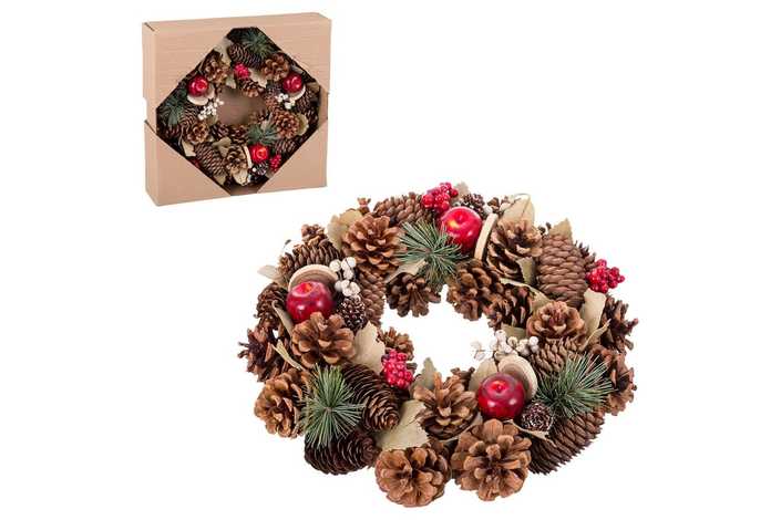 CORONA PIÑAS, HOJAS Y MANZANAS NATURAL 30 X 8 X 30 CM
