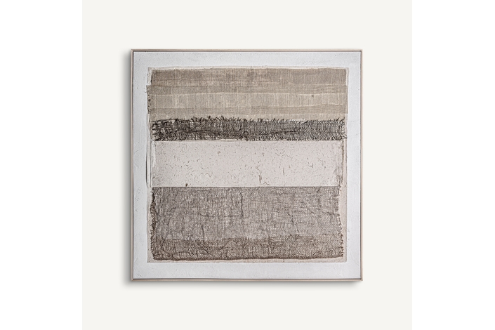 Cuadro Bavois de estilo contemporáneo, fabricado en lienzo en color blanco roto, combinado con madera de pino en color marrón claro en color tonos en marrón.