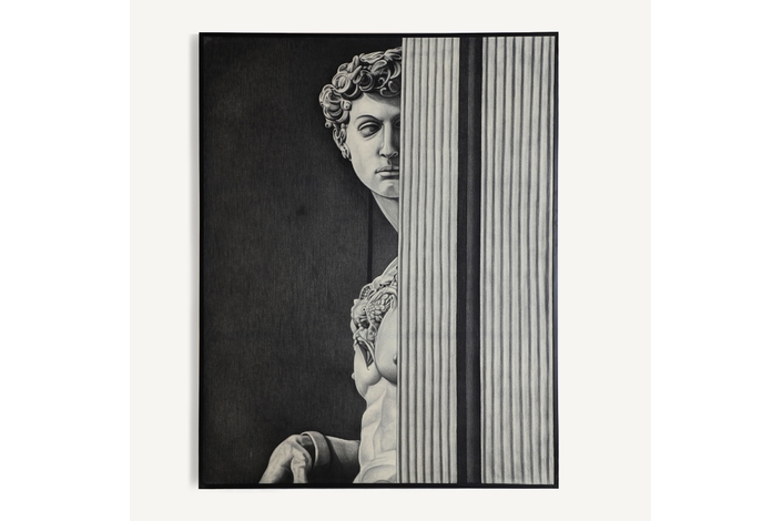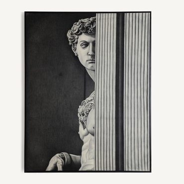 Cuadro Daniel de estilo provenzal, fabricado en lienzo en color tonos oscuros con acabado artesanal, combinado con madera de pino en color negro.
