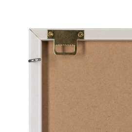 Marco blanco de poliestireno. Grosor del marco: 1,8cm. Incluye colgador para su correcta sujeción.