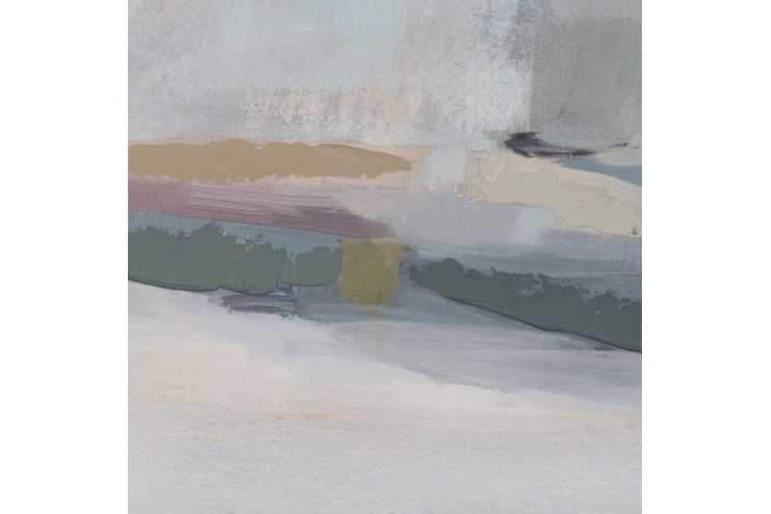 Lienzo con marco de poliestireno. Impresión con textura y 50% acabado a mano. Colocación horizontal.