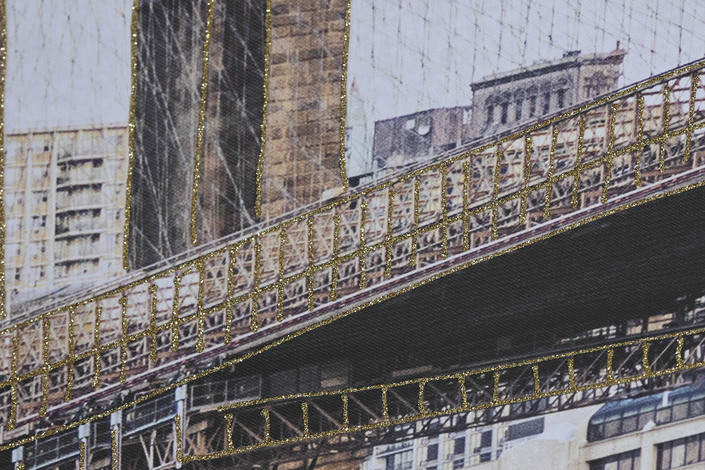 Dimensiones (cm) Longitud 150  |  Fondo 3  |  Altura 100 Material Lienzo  |  Purpurina
