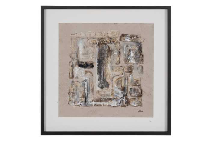 Pintura 38x38cm. DM 2.5mm. Fondo blanco:57x57cm. Moldura taco negro ayous 1,5x4 cm.