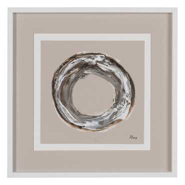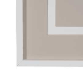 Pintura 30x30cm. DM 2.5mm. Filo blanco 34x34cm. Fondo visón:47x47cm. Moldura taco blanco DM 1,5x4 cm.