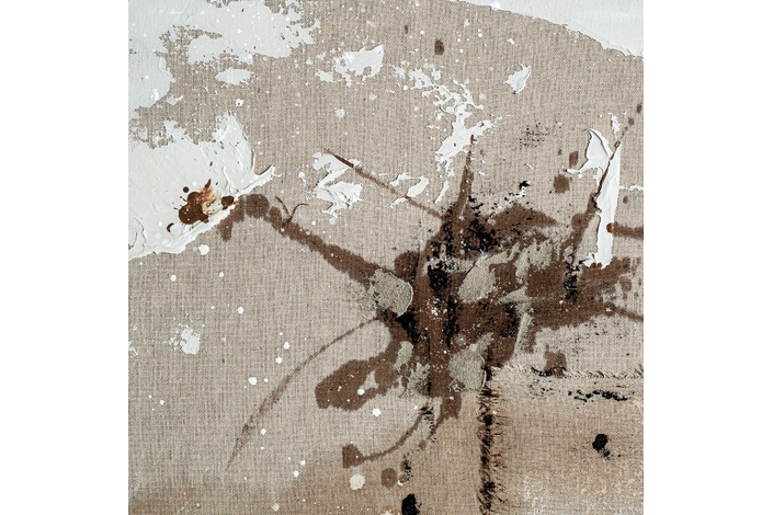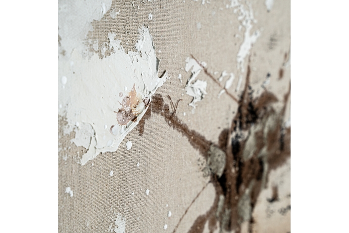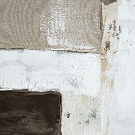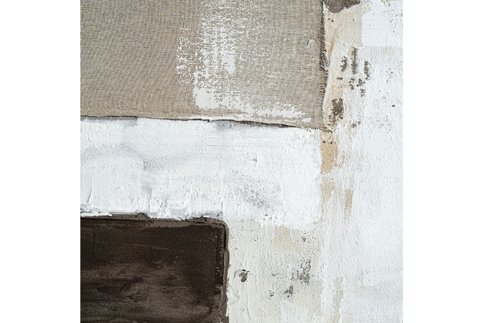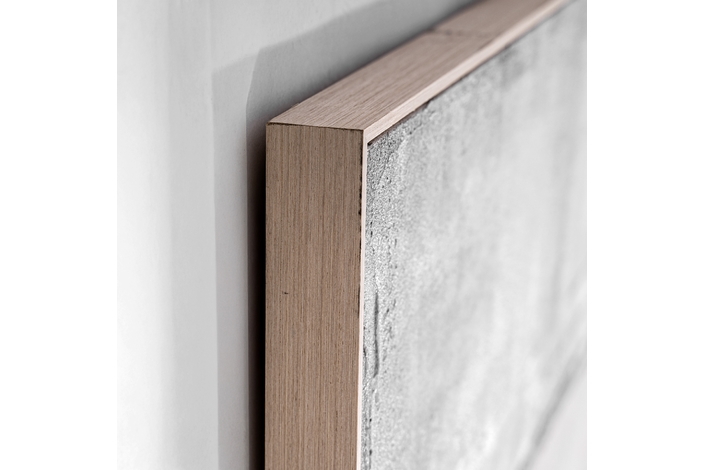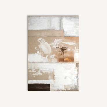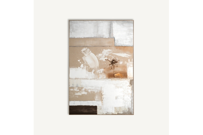 Cuadro Radel de estilo contemporáneo, fabricado en lienzo en color tonos neutros, combinado con madera de pino en color marrón.