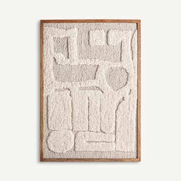 Cuadro Triton de estilo contemporáneo, fabricado en algodón en color beige, combinado con madera de mango en color marrón.