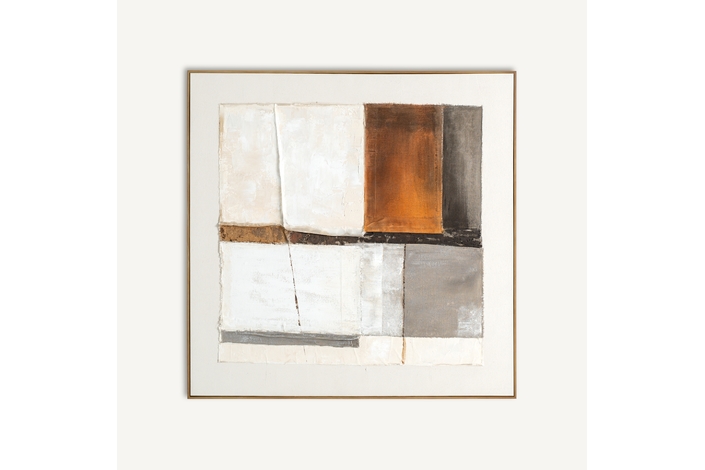 Cuadro Unai de estilo contemporáneo, fabricado en lienzo en color tonos en marrón, combinado con madera de pino en color marrón.